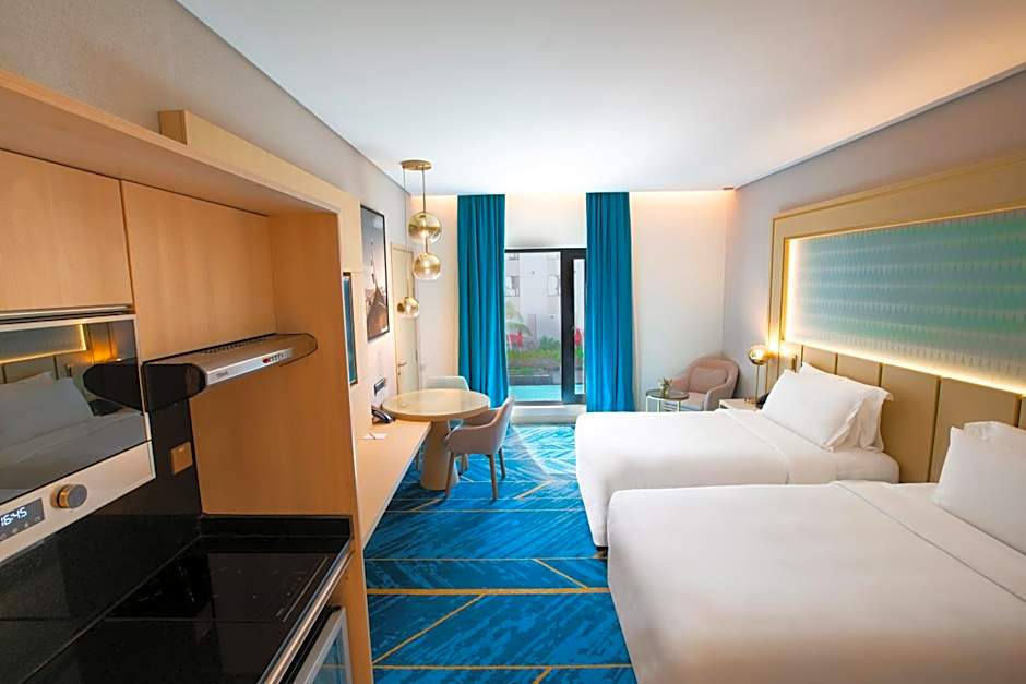 This spacious suite consists of 1 living room, 1 separate bedroom and 1 bathroom with a bath and free toiletries. The air-conditioned suite provides a flat-screen TV with streaming services, a mini-bar, a coffee machine, a seating area as well as pool views. The unit offers 1 bed.